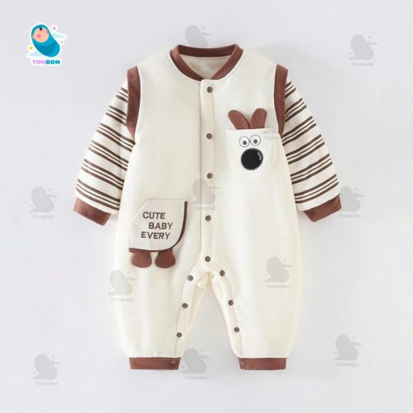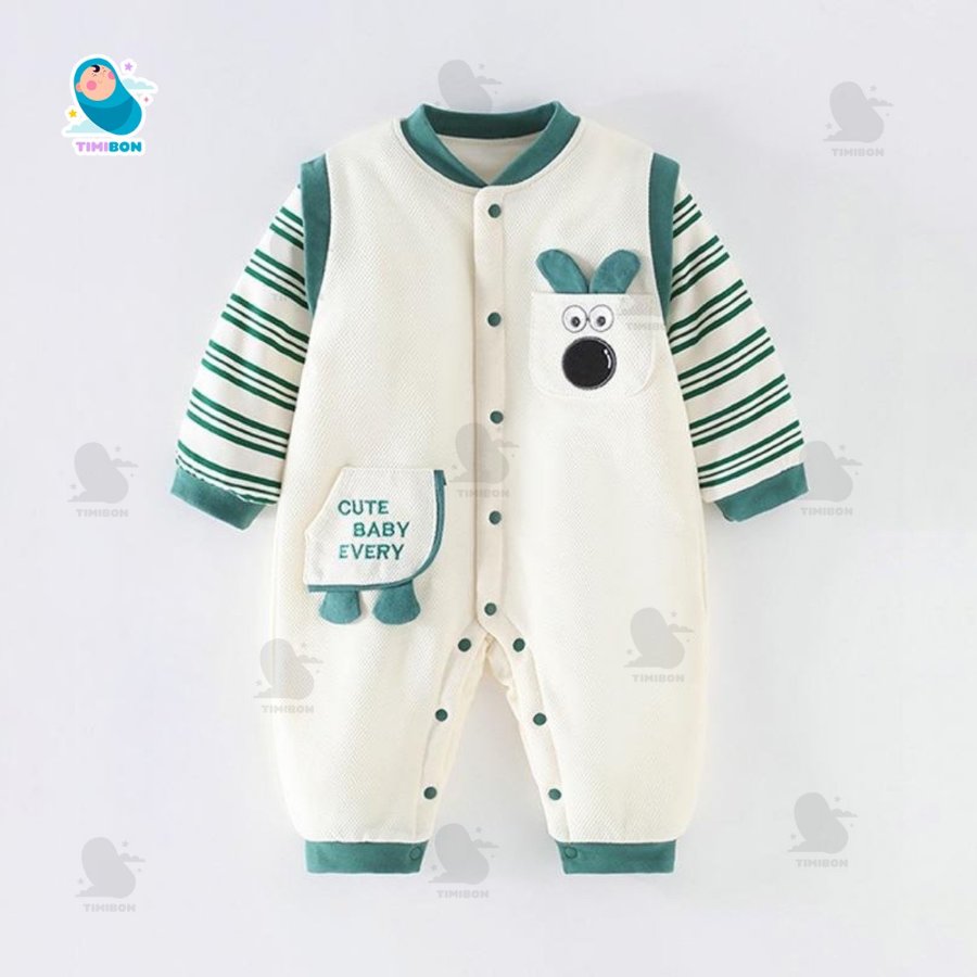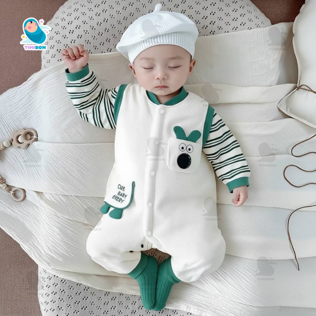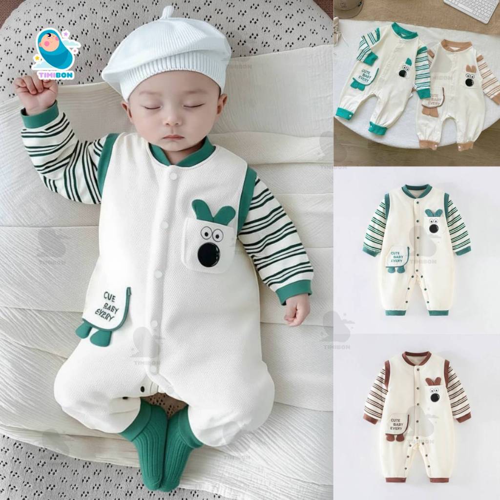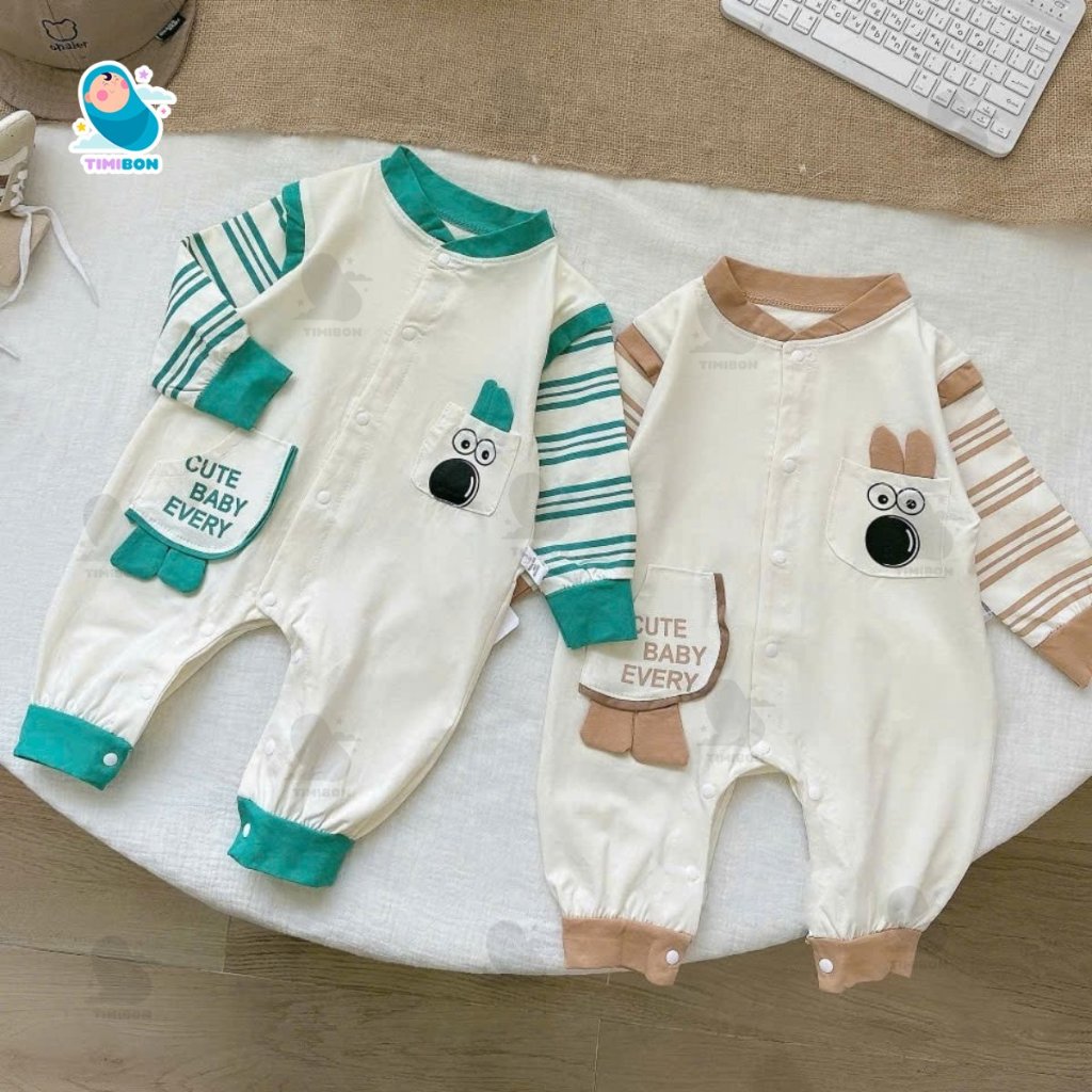 Body Dài Tay Cho Bé Trai Bé Gái Hình Chó Cún, Bodysuit Thu Đông Mềm Mịn, Đồ Sơ Sinh Liền Thân Timibon Kids [BDD94]