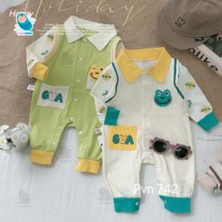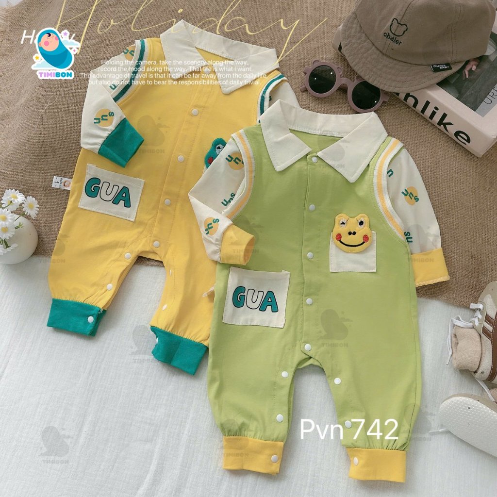 Body Dài Tay Cho Bé Trai Bé Gái Hình Ếch, Bodysuit Thu Đông Mềm Mịn, Đồ Sơ Sinh Liền Thân Timibon Kids [BDD92]