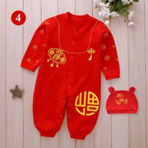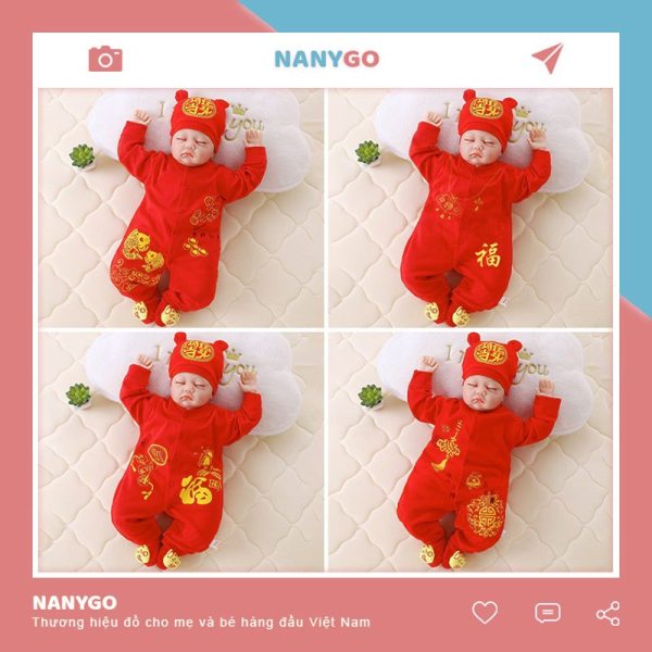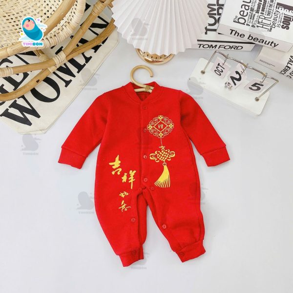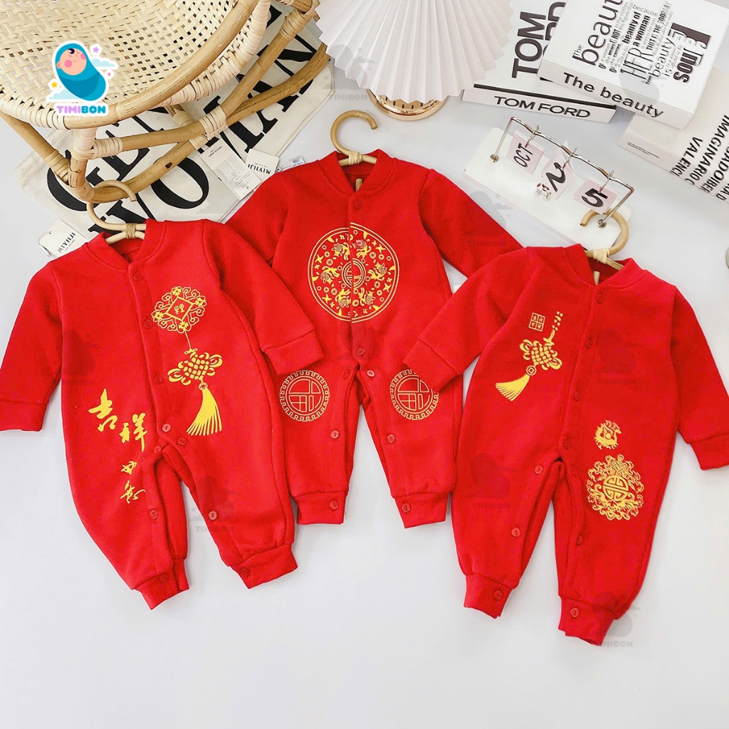 Body Tết Tài Lộc Dài Tay Liền Thân Màu Đỏ Mẫu Quần Áo Bé Trai Bé Gái Sơ Sinh – [BDD11]