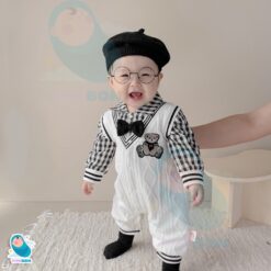 Body Len Cho Bé Bodysuit Công Tử Trắng Phối Sơ Mi Kẻ Caro Cho Bé Mặc Thu Đông – BDD28