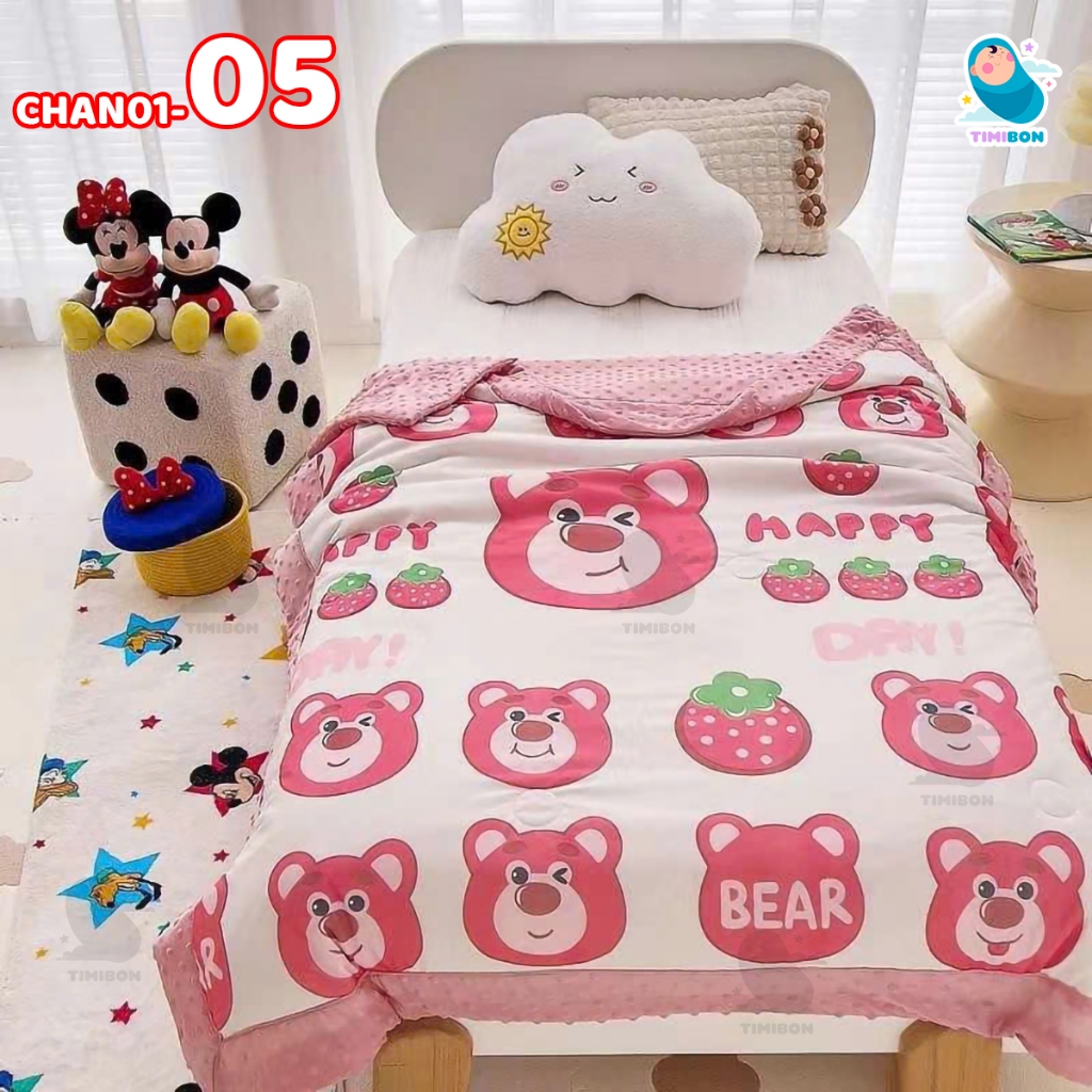 Chăn Cho Bé Kích Thước 1m1x1m5 Chất Liệu Vải Thun Lạnh Chần Bông Tơ Mềm Mại, Một Mặt Hạt Matxa Đắp Siêu Thích – [CHAN01]