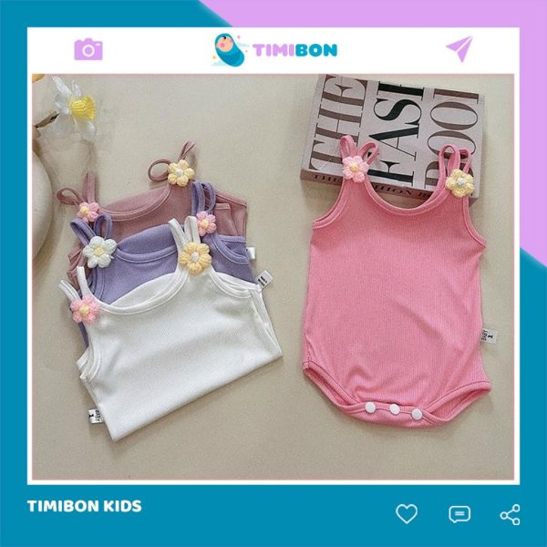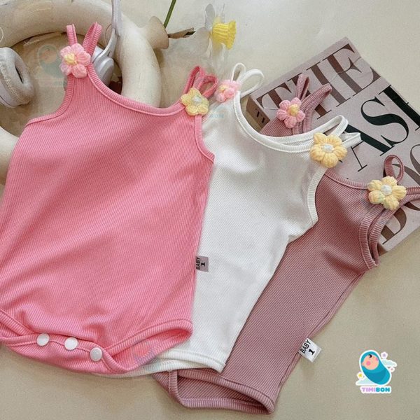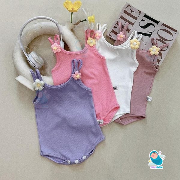 [ Chất Tăm Lạnh ] Body Chip Bodysuit Hai Dây Đính Hoa Dễ Thương Cho Bé Gái Từ Sơ Sinh Đến 12kg – [BDCHIP22]