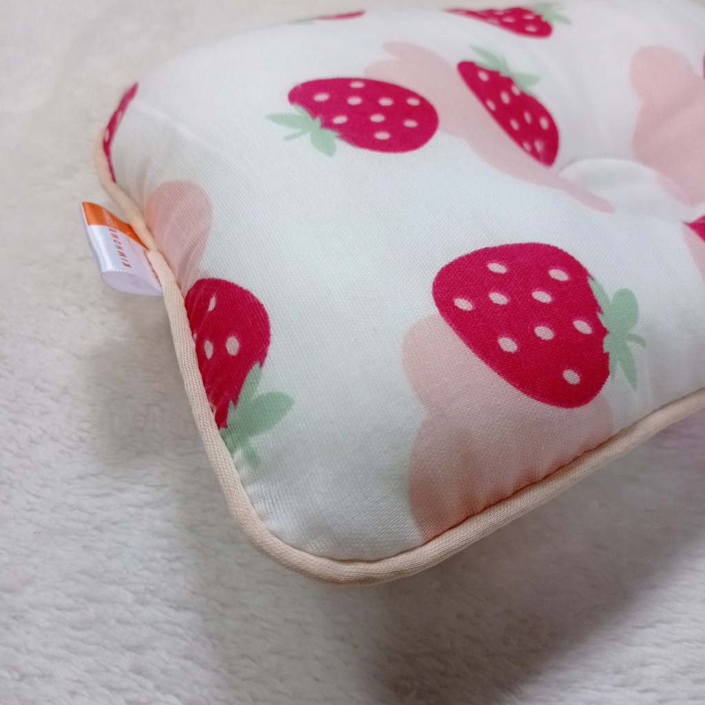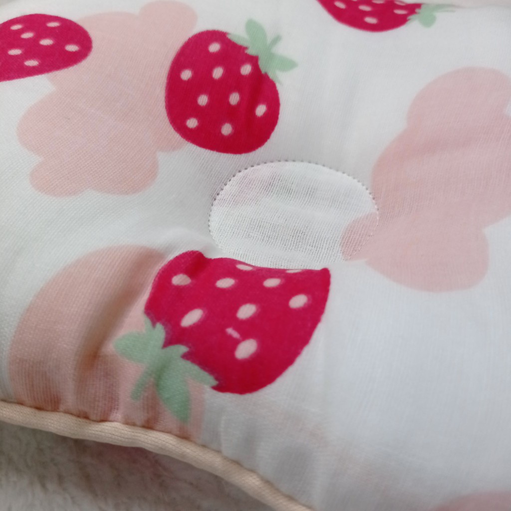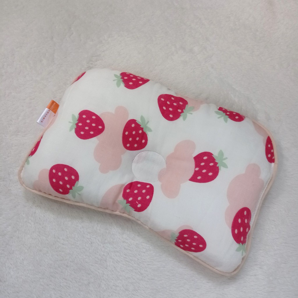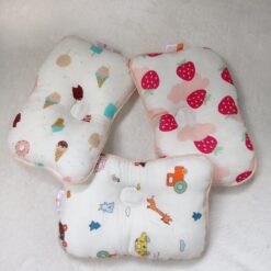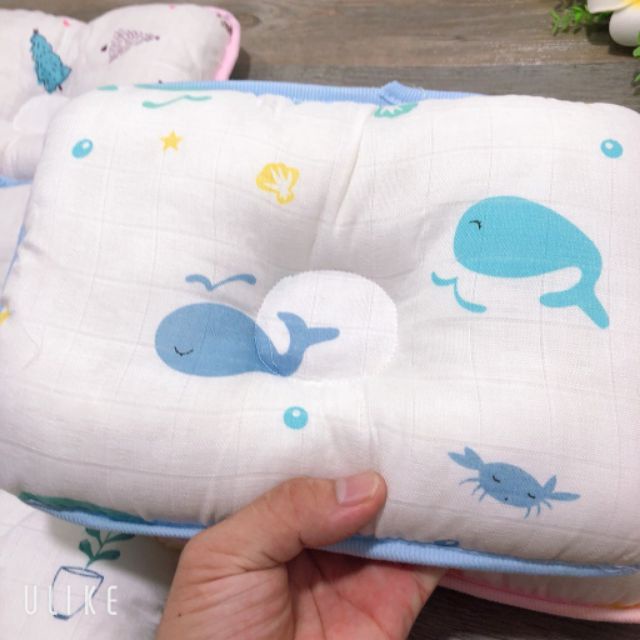 Gối cho bé chất liệu vải xô thoáng mát, thấm hút mồ hôi, ruột bằng bông cực kì mềm mại. Gối may có phần lõm vừa với đầu bé với tác dụng chống méo, móp đầu