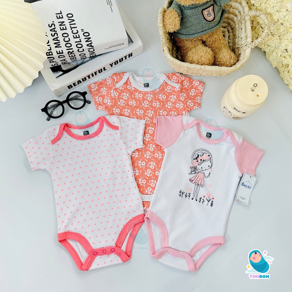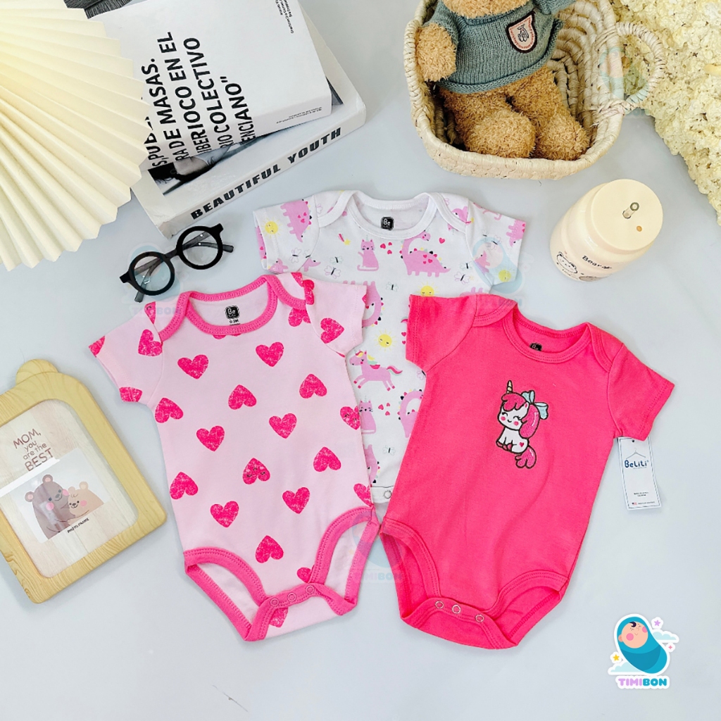 Set 3 bodysuit, body chip cho bé gái và bé trai sơ sinh