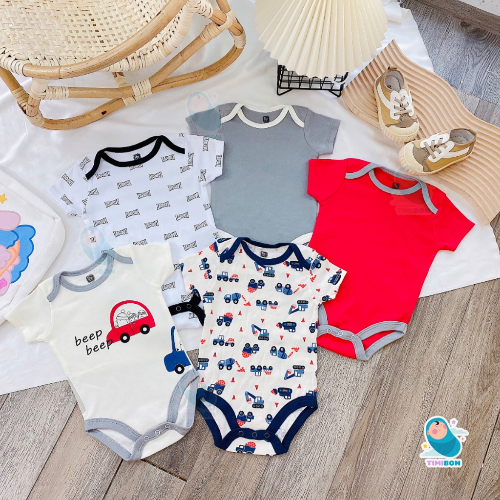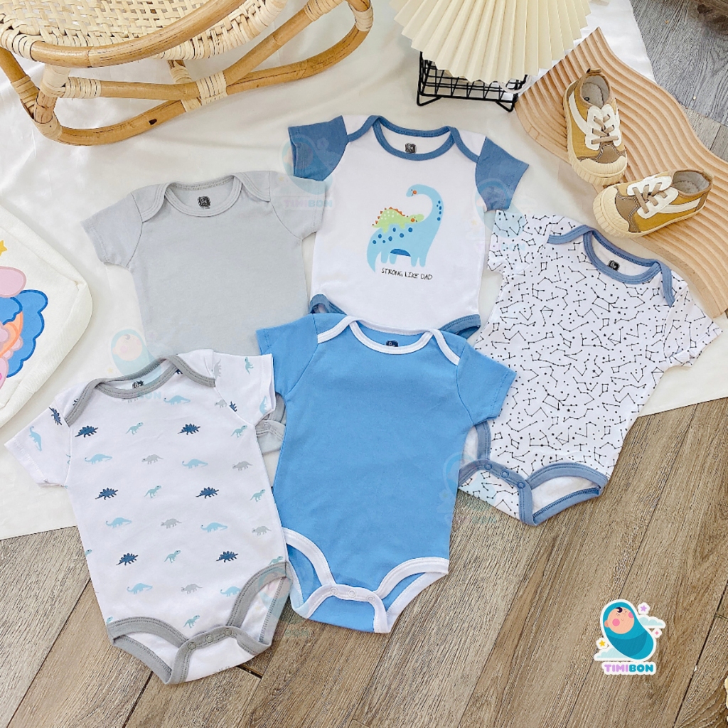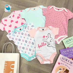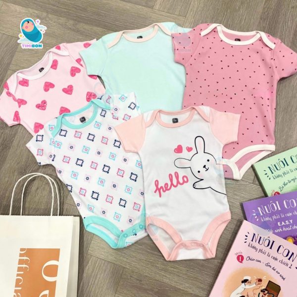Set 5 bodysuit, body chip cho bé gái và bé trai sơ sinh