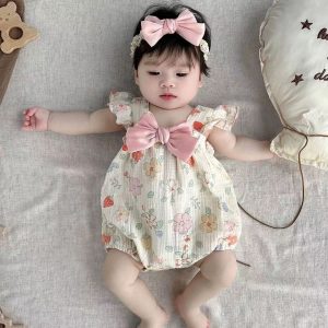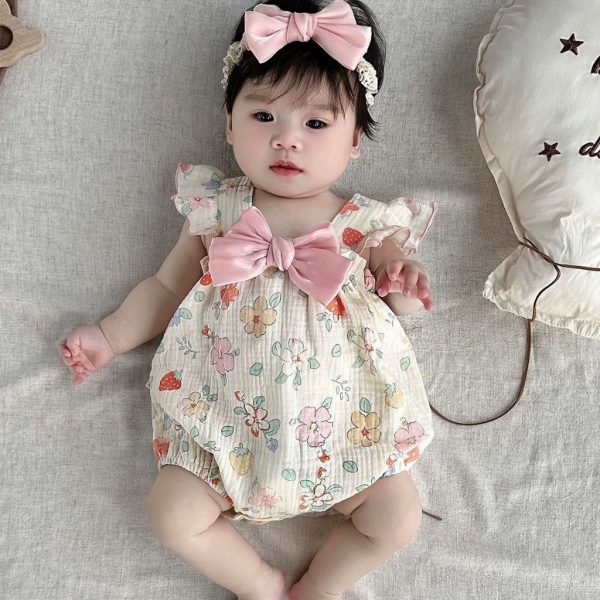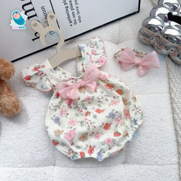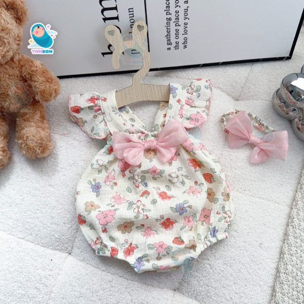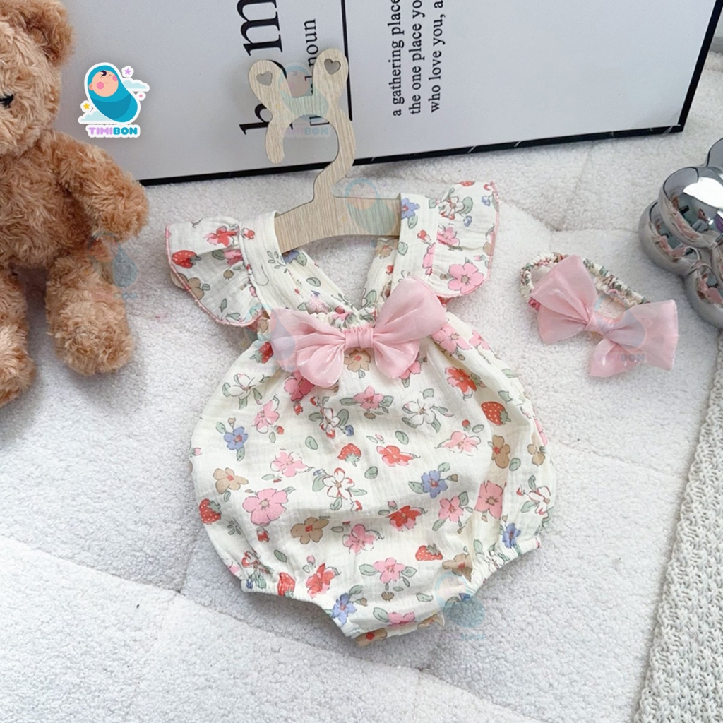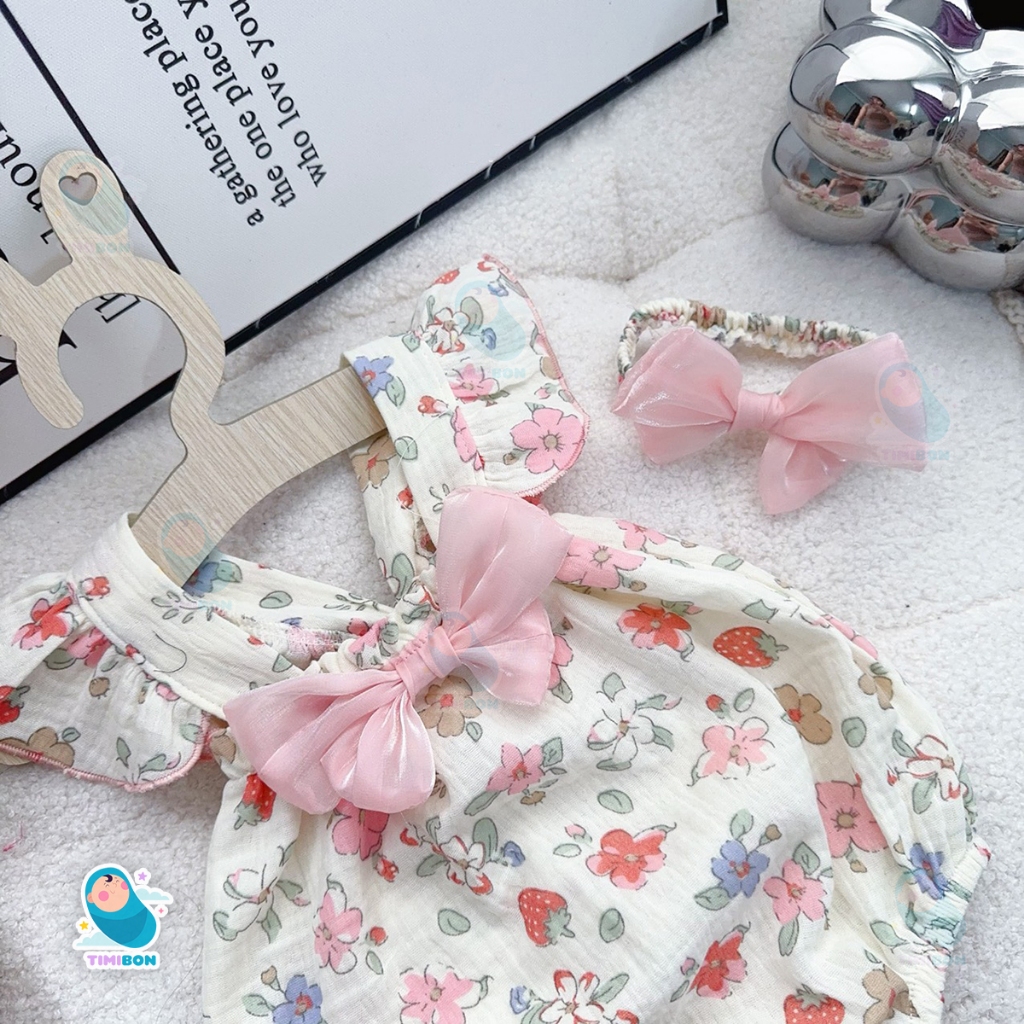 [ Kèm Tuban Nơ ] Set Body Chip Vải Xô Muslin Mềm Hoa Xinh Đáng Yêu Cho Bé Gái Từ Sơ Sinh Đến 12KG – [BDCHIP34]