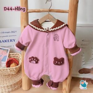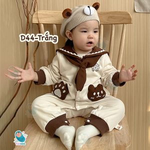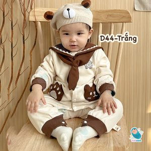 Quần Áo Trẻ Em Sơ Sinh Bộ Đồ Liền Thân Dài Tay Gấu Nâu Hải Quân Bodysuit Hình Gấu Nâu Cho Bé [BDD44]