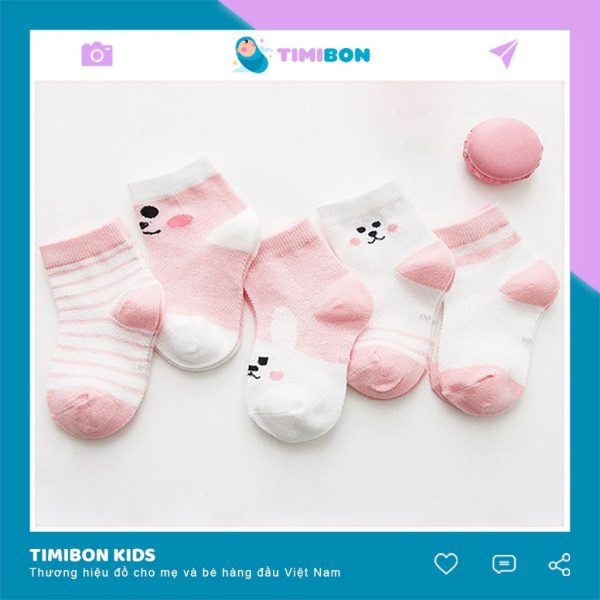 Set 5 Đôi Tất Robibabi 100% Cotton Cho Bé