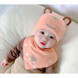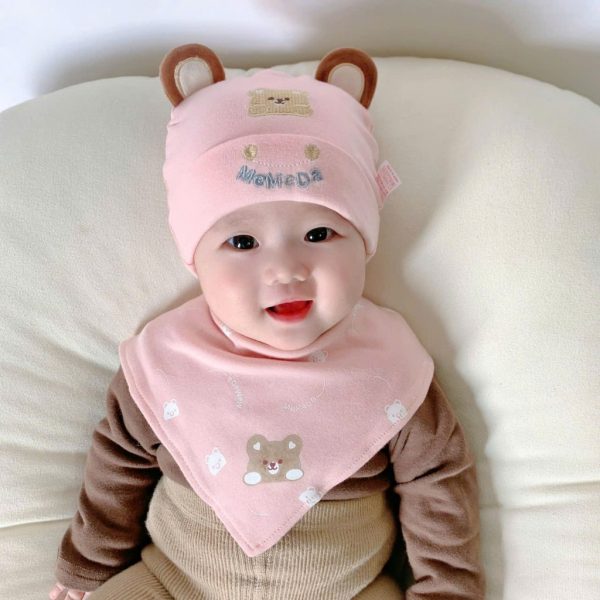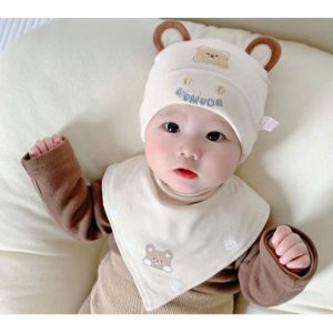 Set Mũ Khăn Tai Gấu Tròn Bằng Vải cotton Nguyên Chất Cho Bé Trai / Gái 0-12 Tháng Tuổi [SET-MŨ-KHĂN-01]