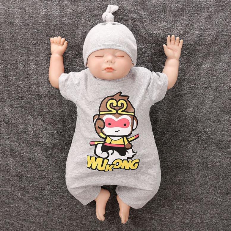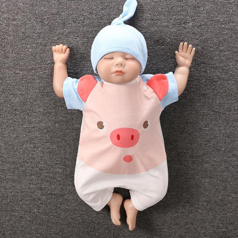 [ Tặng Kèm Mũ ] Quần Áo Trẻ Em Sơ Sinh Bộ Đồ Liền Thân Cộc Tay Chất Cotton Bodysuit Hình Thú Cho Bé Trai Bé Gái – [BDC3]