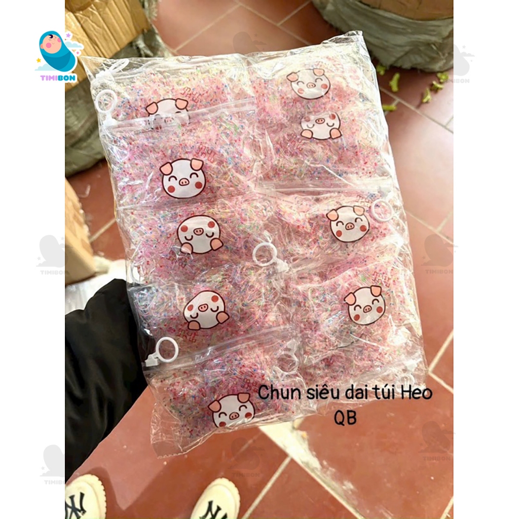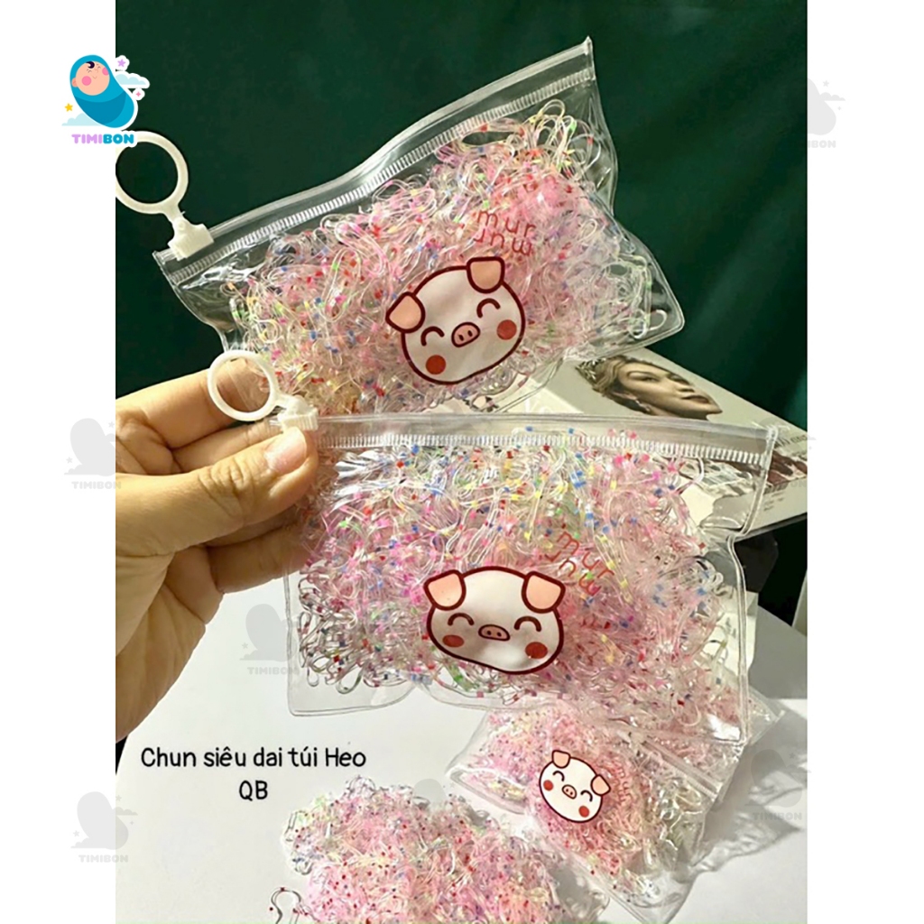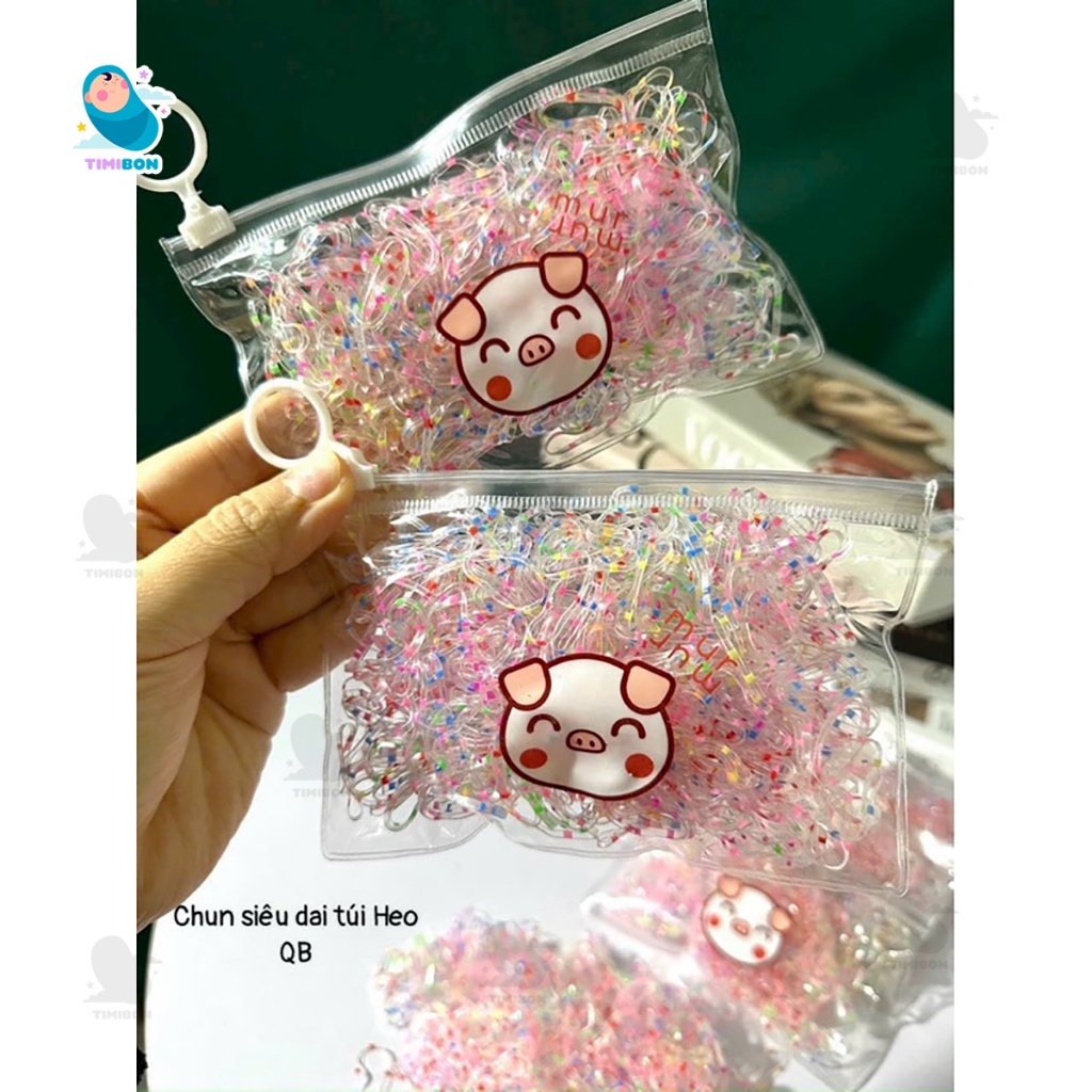 Túi Zip 1000 Chun Thun Cột Tóc Siêu Dai Hình Heo Đang Yêu Cho Bé [DBT02]