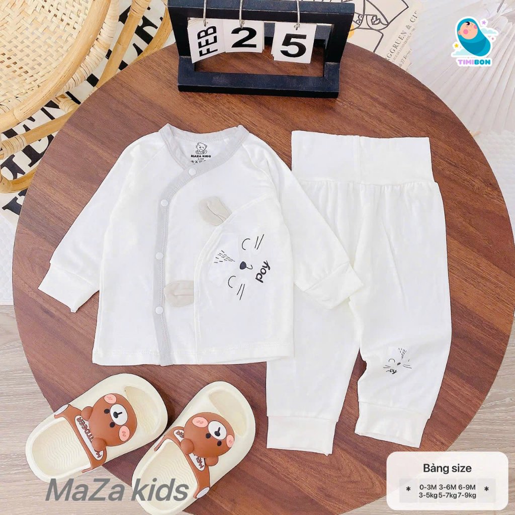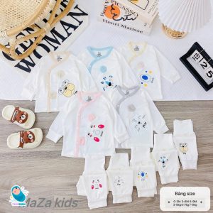 • Kiểu dáng: Bộ quần áo sơ sinh dài tay cạp cao, giữ ấm bụng, ấm lưng, khuy bấm vạt chéo.