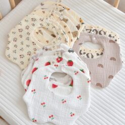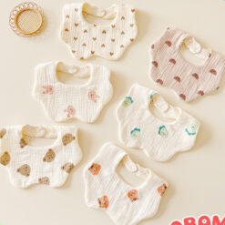 Yếm cổ tròn xoay cho bé gái bé trai 360 độ chất liệu muslin 6 lớp 100% cotton cao cấp an toàn cho da YT01