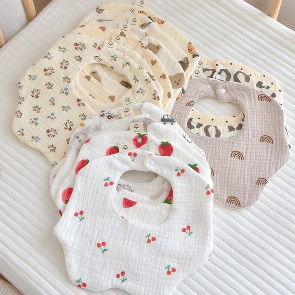 Yếm cổ tròn xoay 360 độ cho bé chất liệu muslin 100% cotton cao cấp